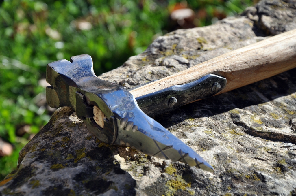 Voici une arme pour le moins multifonctionnelle. Elle possède en effet d’un côté un bec de corbin et un marteau de guerre et de l’autre, un pic alourdi qui ajuste son équilibre.