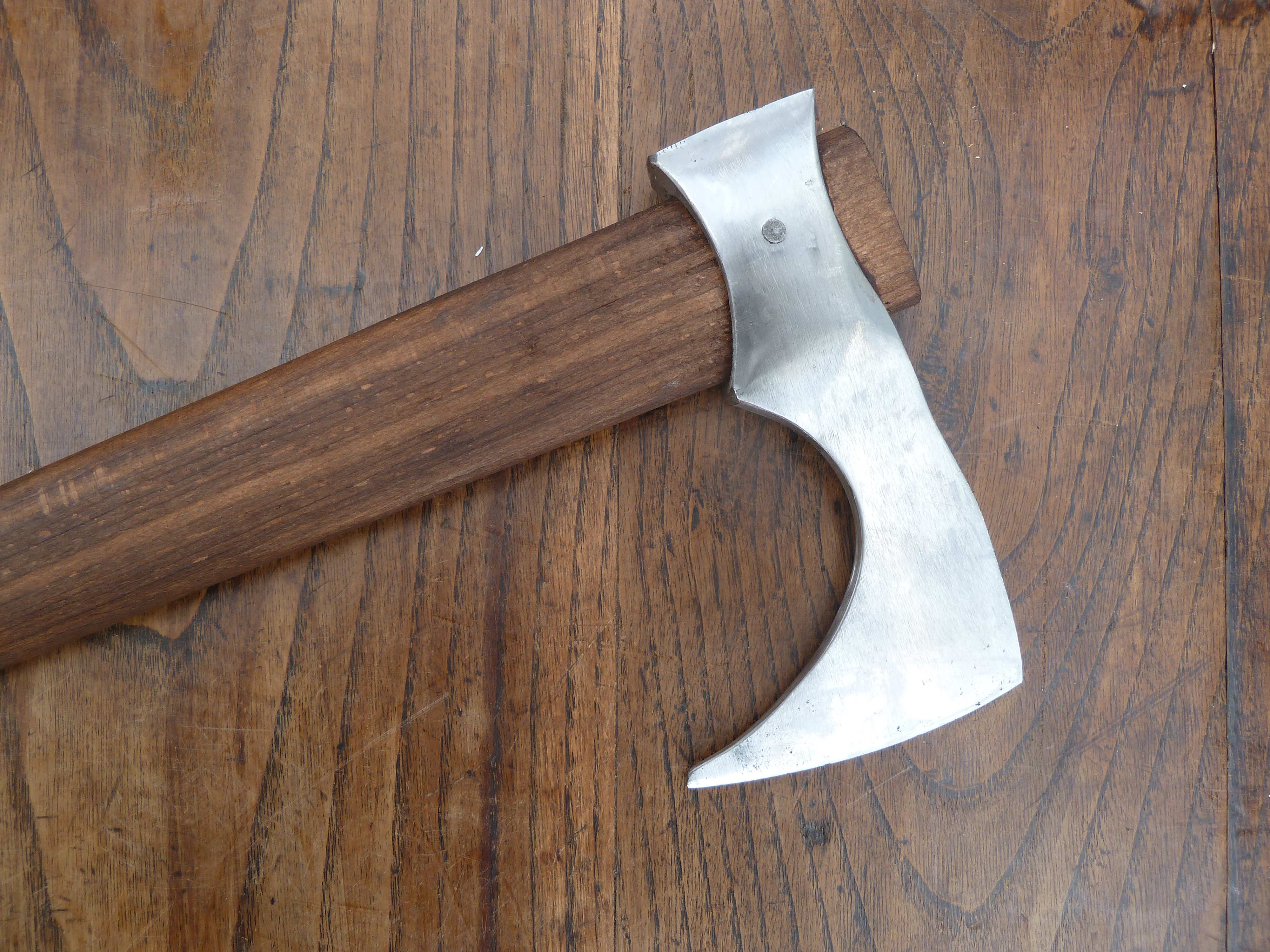 Une hache de piéton fin moyen-âge, utilisée comme arme d’appoint ou comme arme principale conjointement à un bouclier.