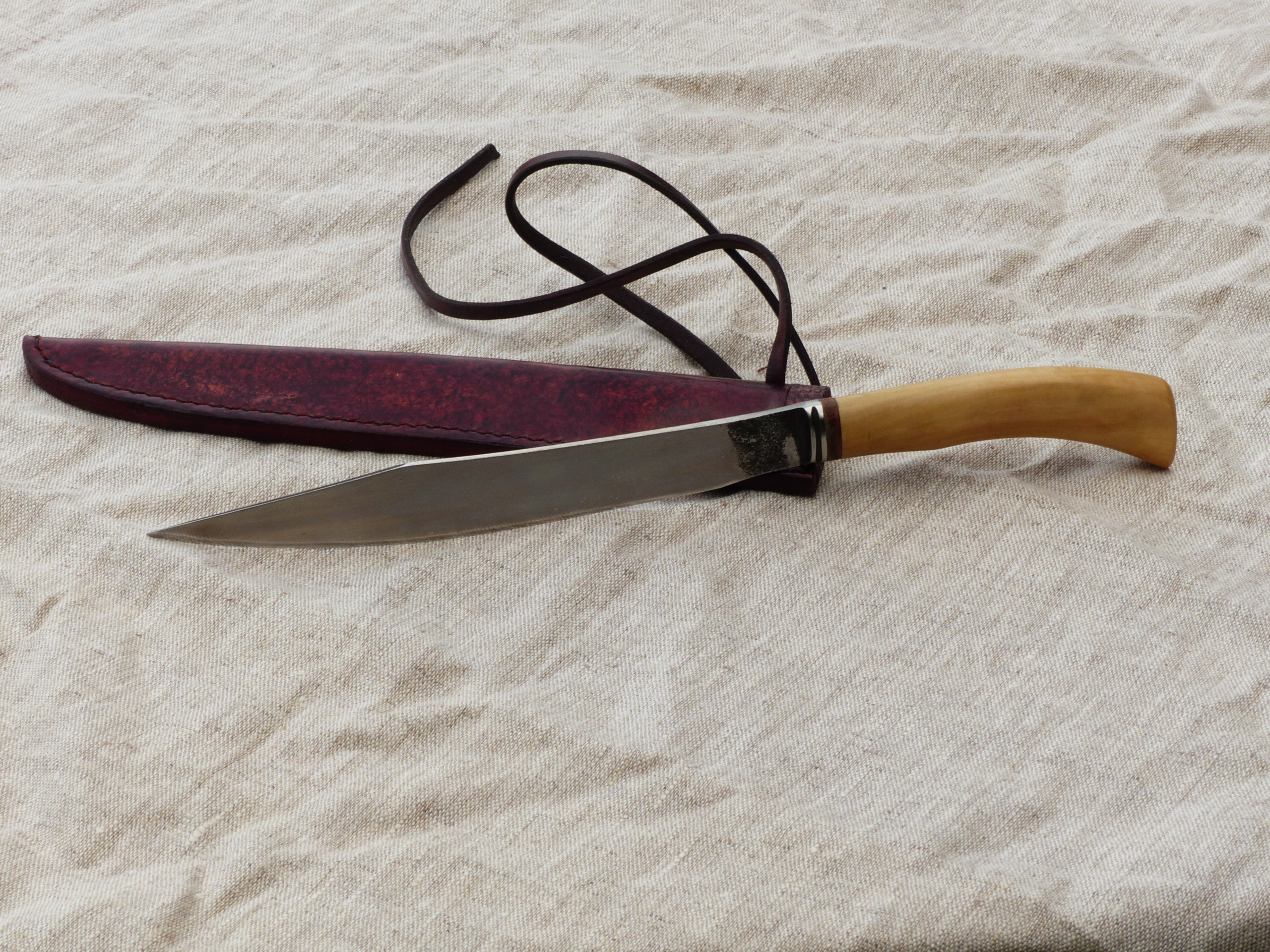 Ici nous avons un grand couteau de table, simple, propre et ergonomique qui découpera vos viandes et saucissons avec une redoutable efficacité.