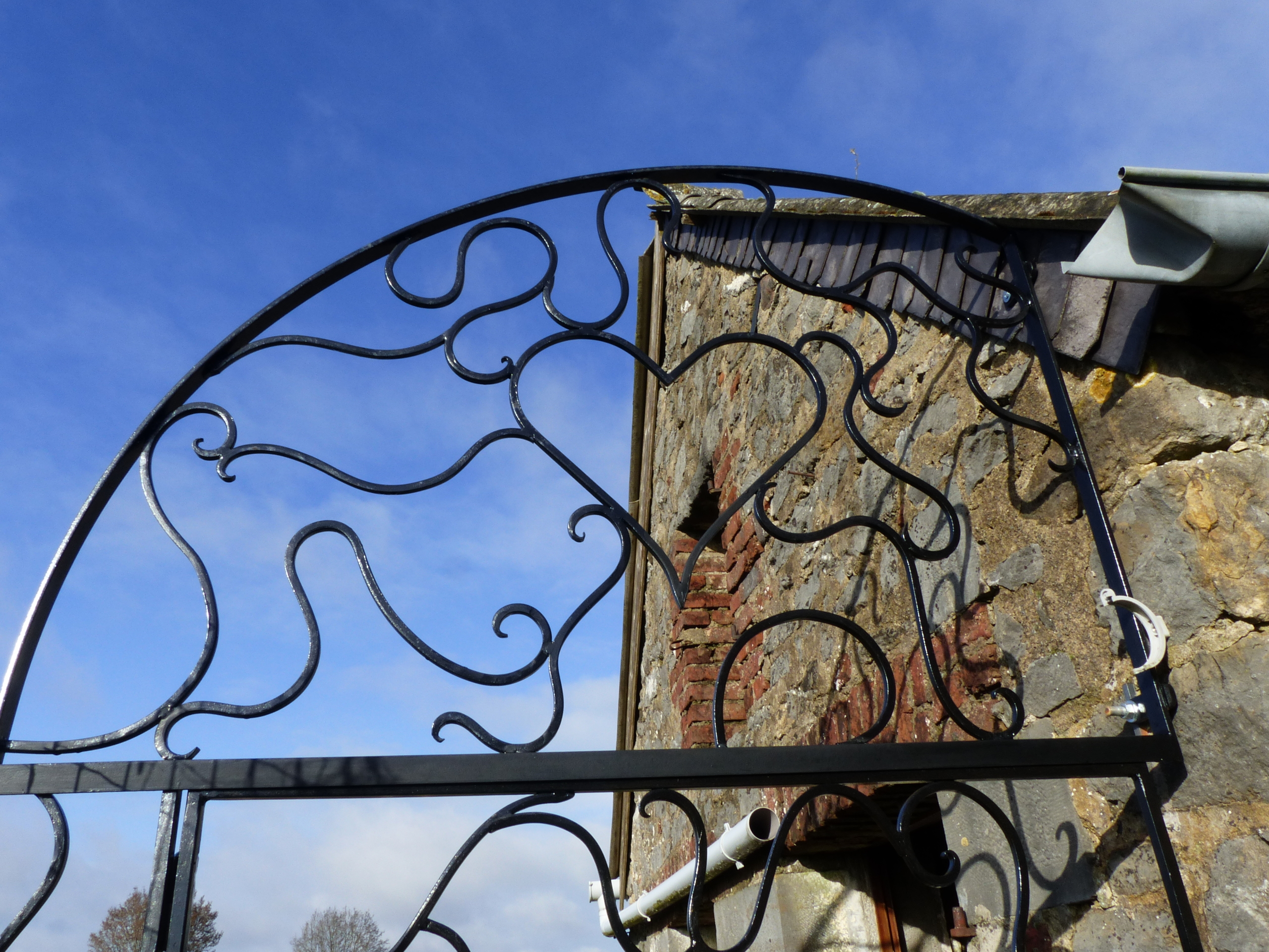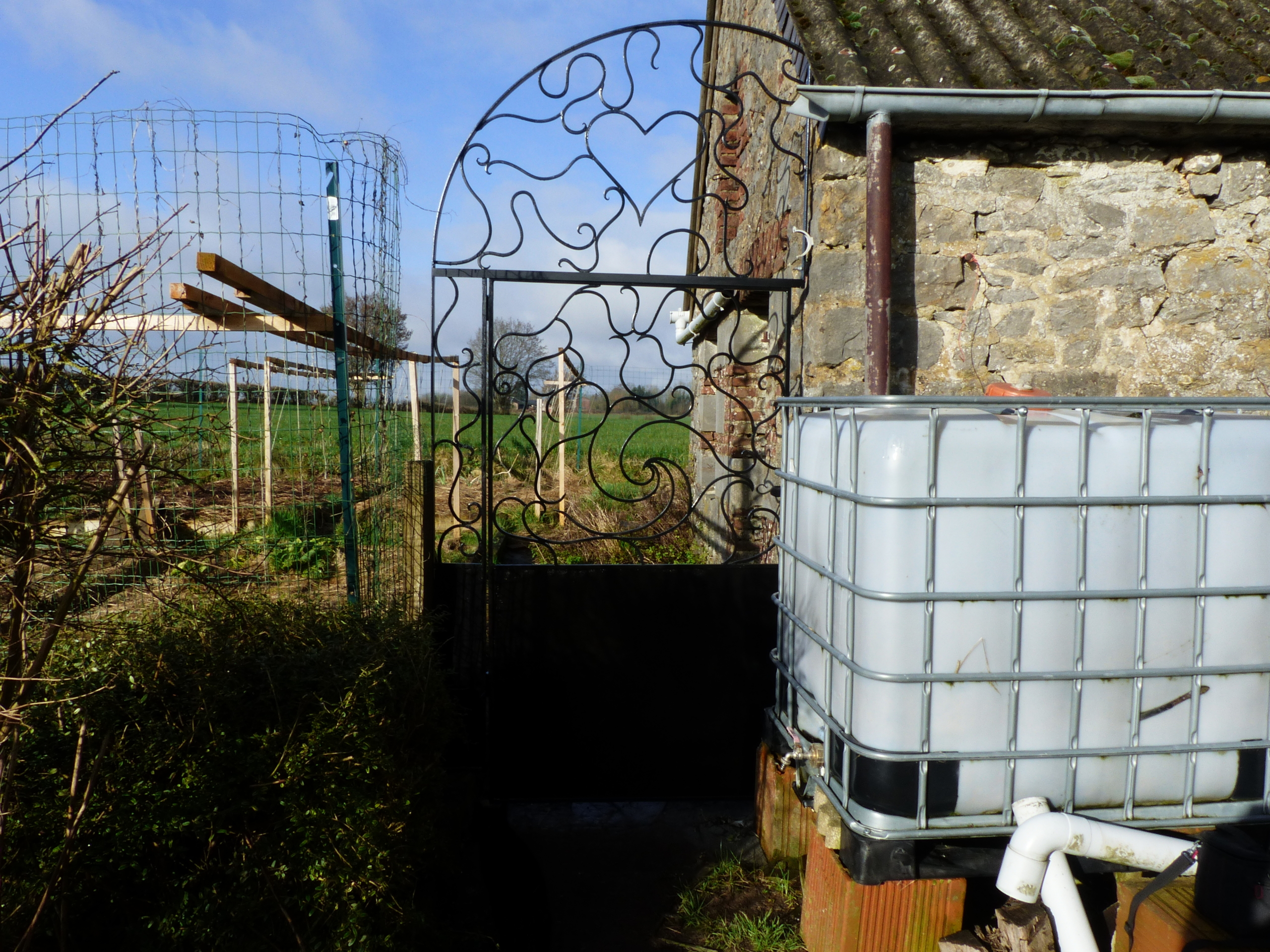 Un portail aux motifs « Racines » pour clore l’entrée du potager.