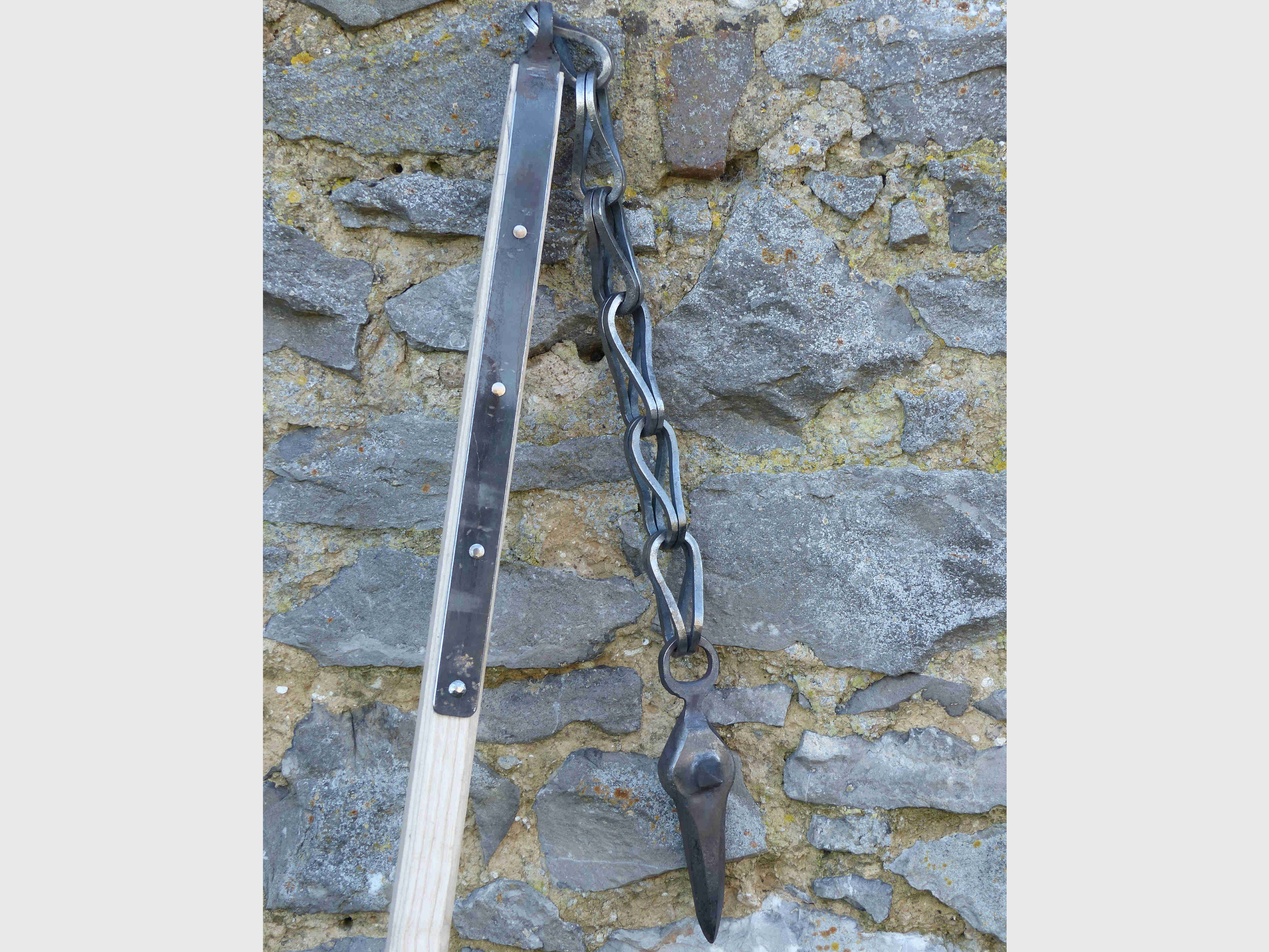 Un fléau à la chaîne assez travaillée et à la lourde tête lui permettant des coups dévastateurs tant contre les cavaliers que contre la piétaille.