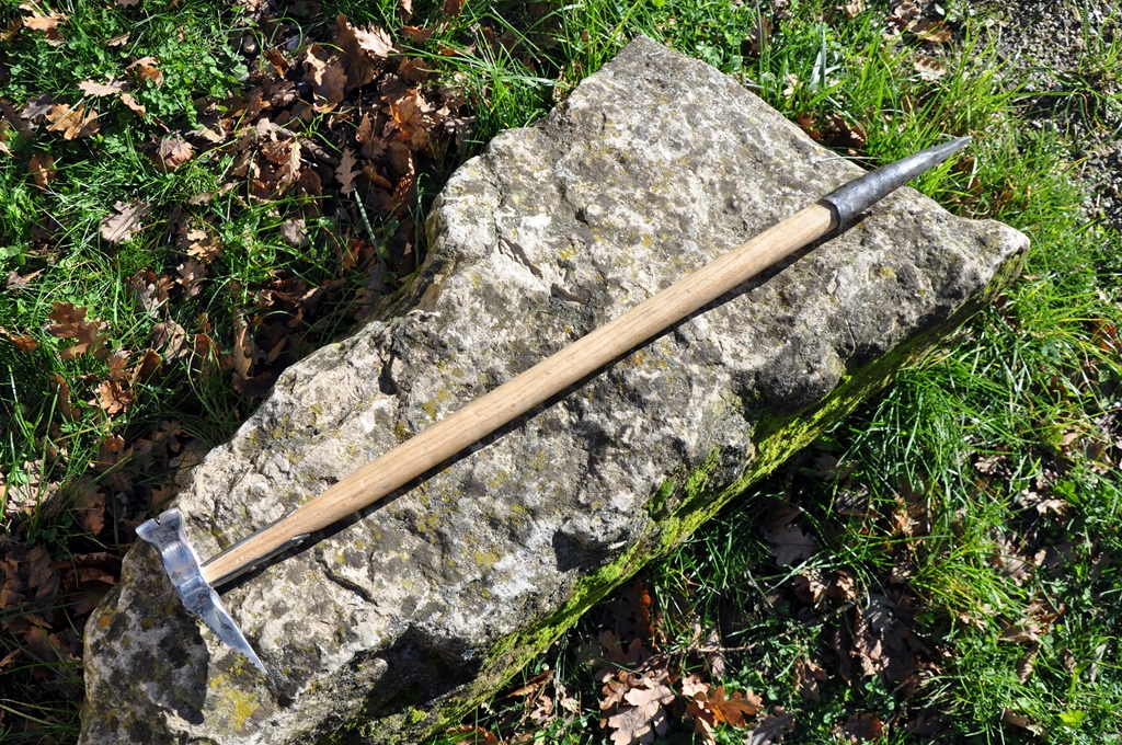Voici une arme pour le moins multifonctionnelle. Elle possède en effet d’un côté un bec de corbin et un marteau de guerre et de l’autre, un pic alourdi qui ajuste son équilibre.