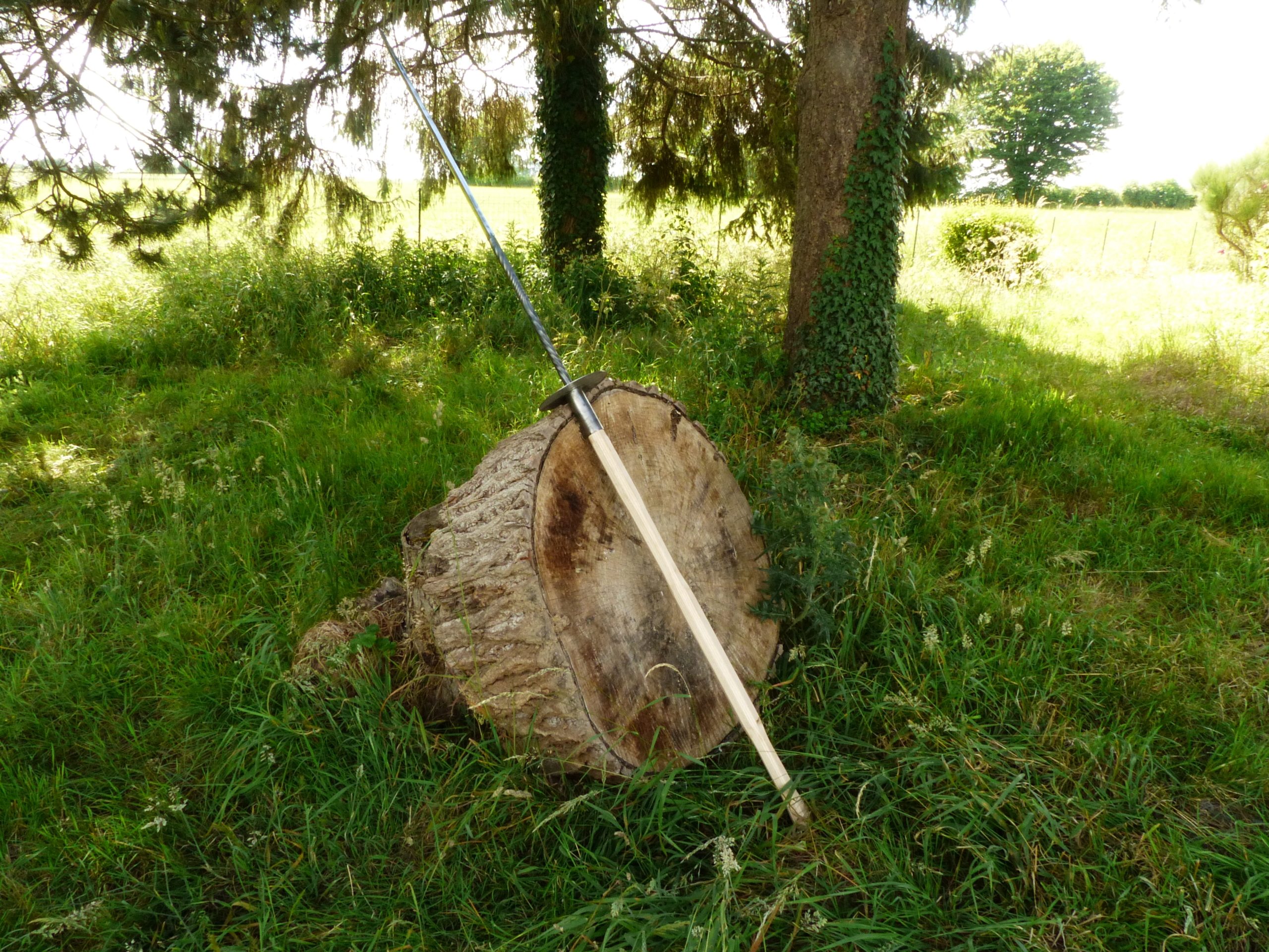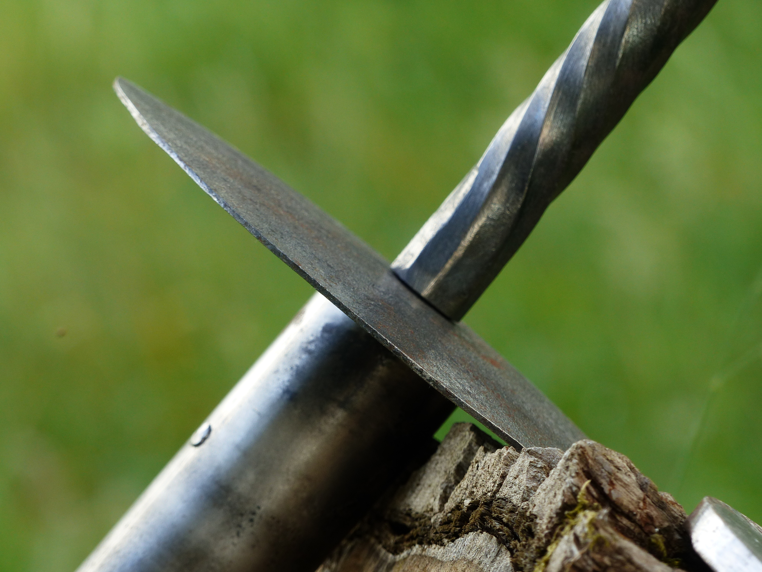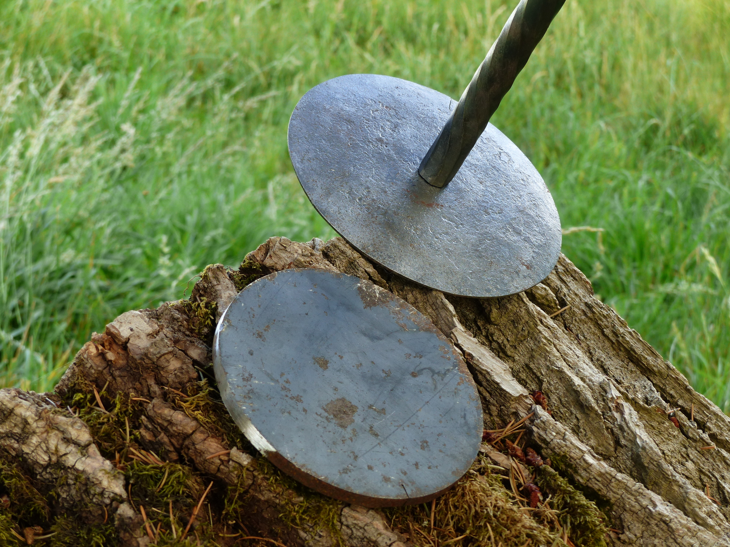 La rouelle est entièrement étirée à la forge à partir d’un disque de métal épais afin d’avoir pour résultat une section allant s’affinant progressivement jusqu’aux bordures assez fines pour pouvoir s’affûter au besoin.