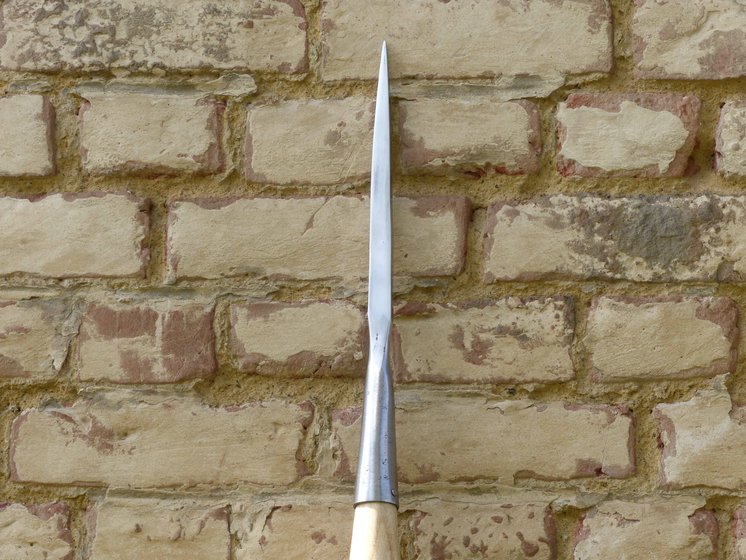 Très prisée par l’infanterie du XVIème siècle, notamment par les troupes espagnoles, la demi-pique équipa en masse les bataillons chargés de repousser les charges de cavalerie. Dotée d’une portée dissuasive, d’une forme simple en poinçon et de clous arrimant la main à la hampe, elle permet de traverser quasiment toutes les armures hormis les plus épaisses.