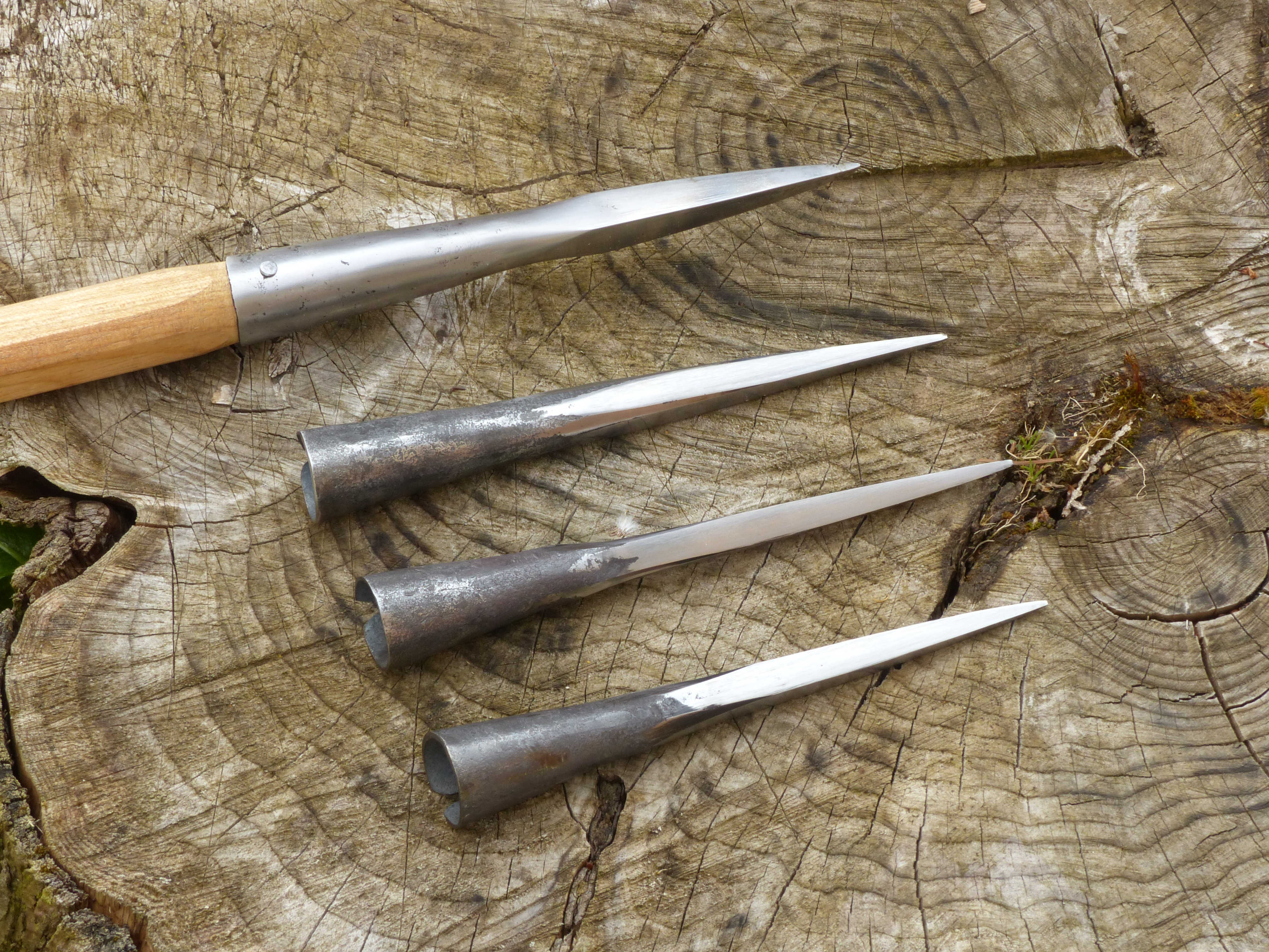 De simple douilles étirées en pointes, en crochet ou encore coupées en talon plat. Très utile pour planter un étendard en terre, disposer les hast en « tipis » et même compléter un arsenal comme arme secondaire à votre hast.