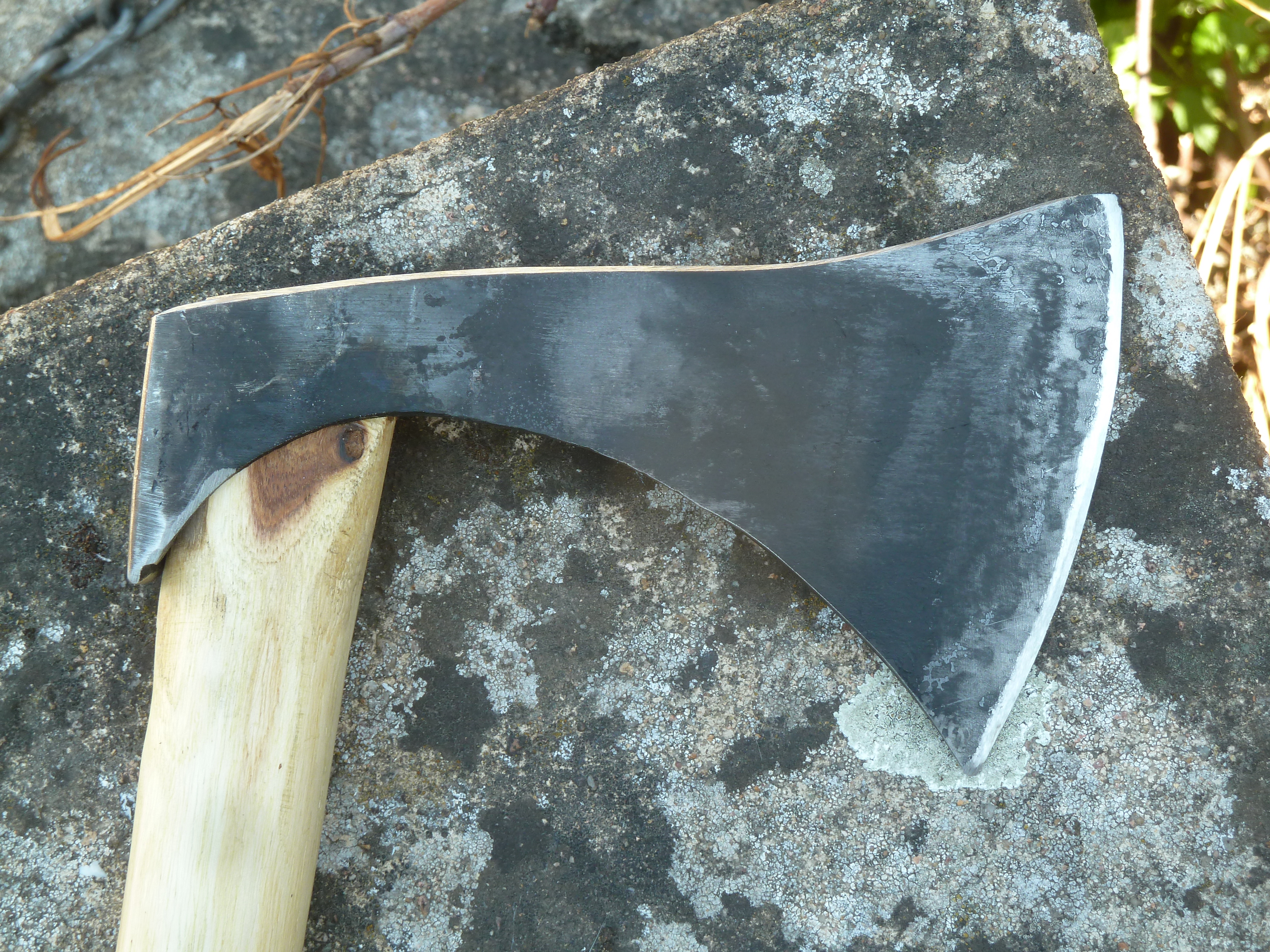 Une forme de francisque typiquement mérovingienne, assez lourde et possédant un œil triangulaire.