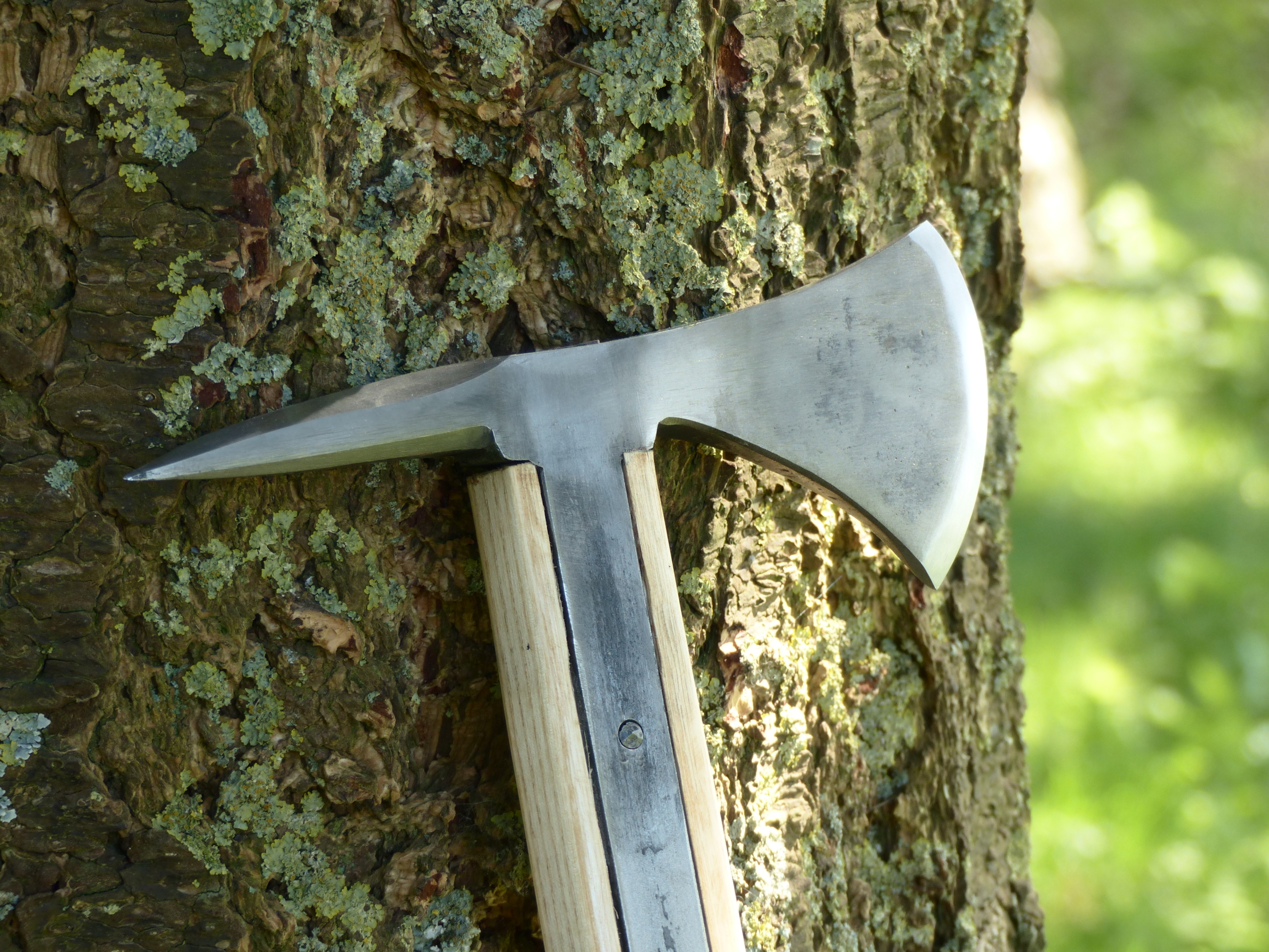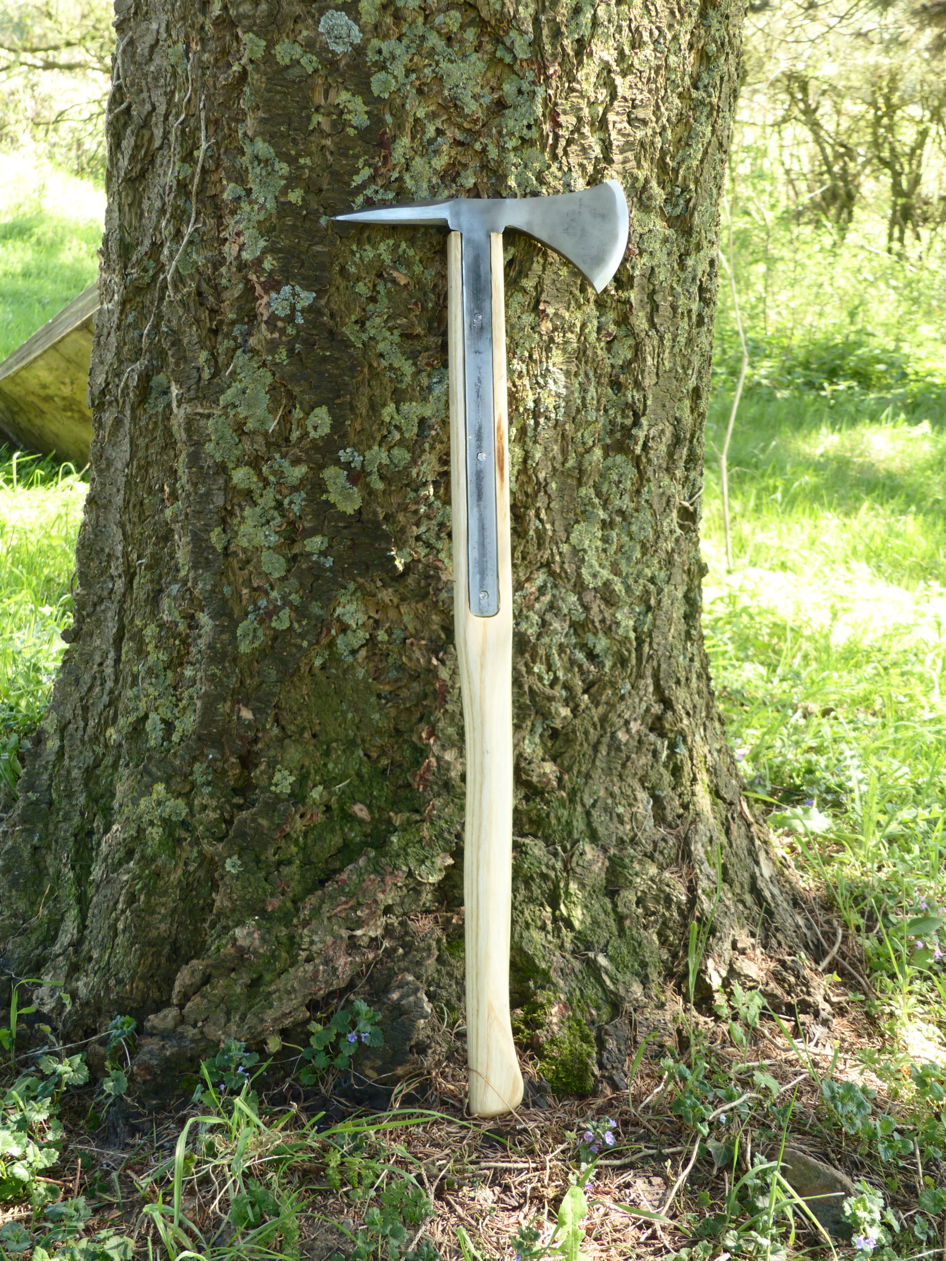 Hache une main dotée d’un bec droit et de frètes latérales. Redoutable au combat, elle permet e plus de venir à bout de fortifications légères.
