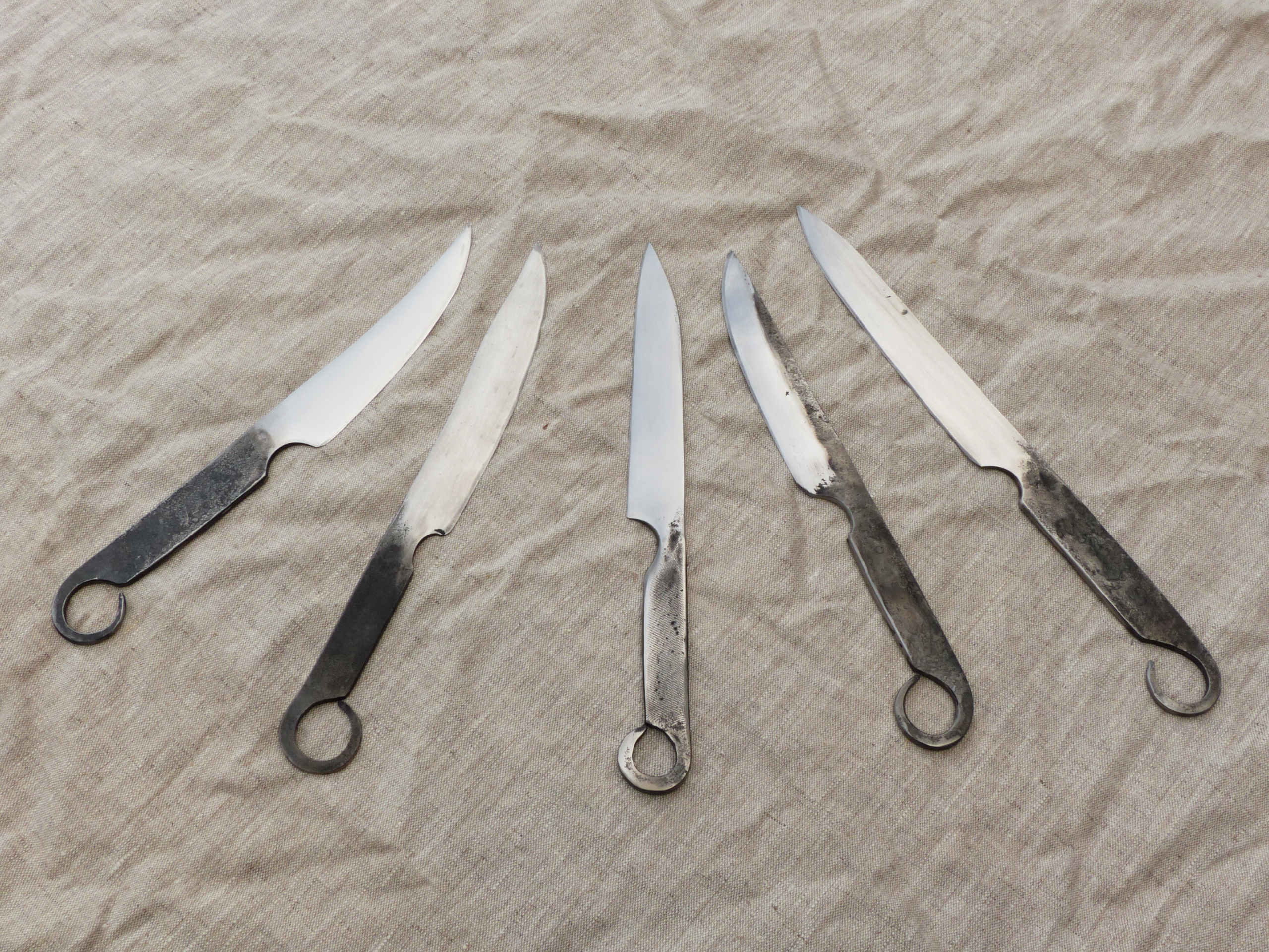 Droits ou courbes, polis ou bruts, en acier laminé ou en vieilles limes reforgées, ces couteaux ont pour point commun leurs anneaux caractéristiques et leurs poignées full-métal.