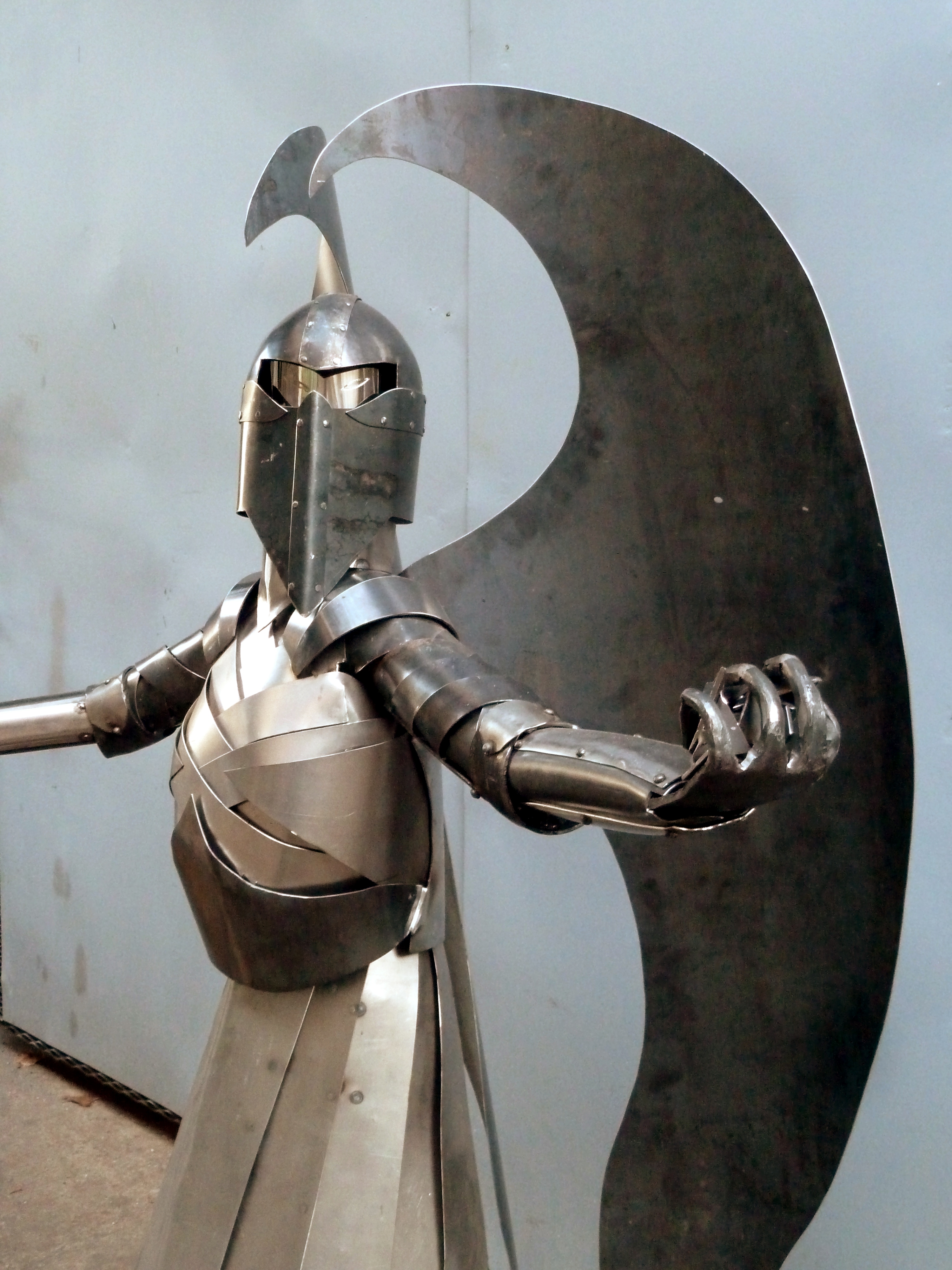 Ange en armure tenant un cœur de démon en sa main gauche et une lance en sa main droite.