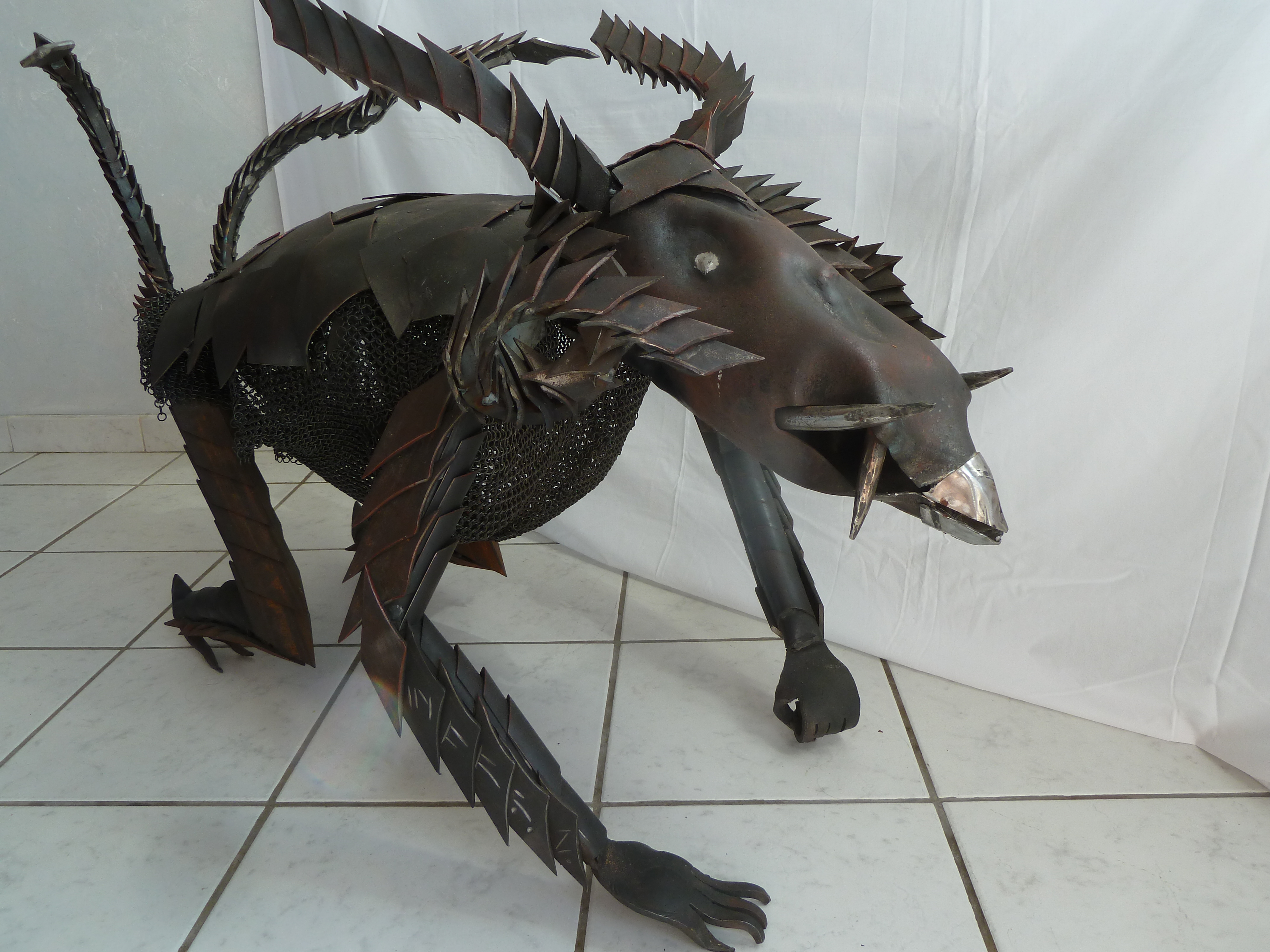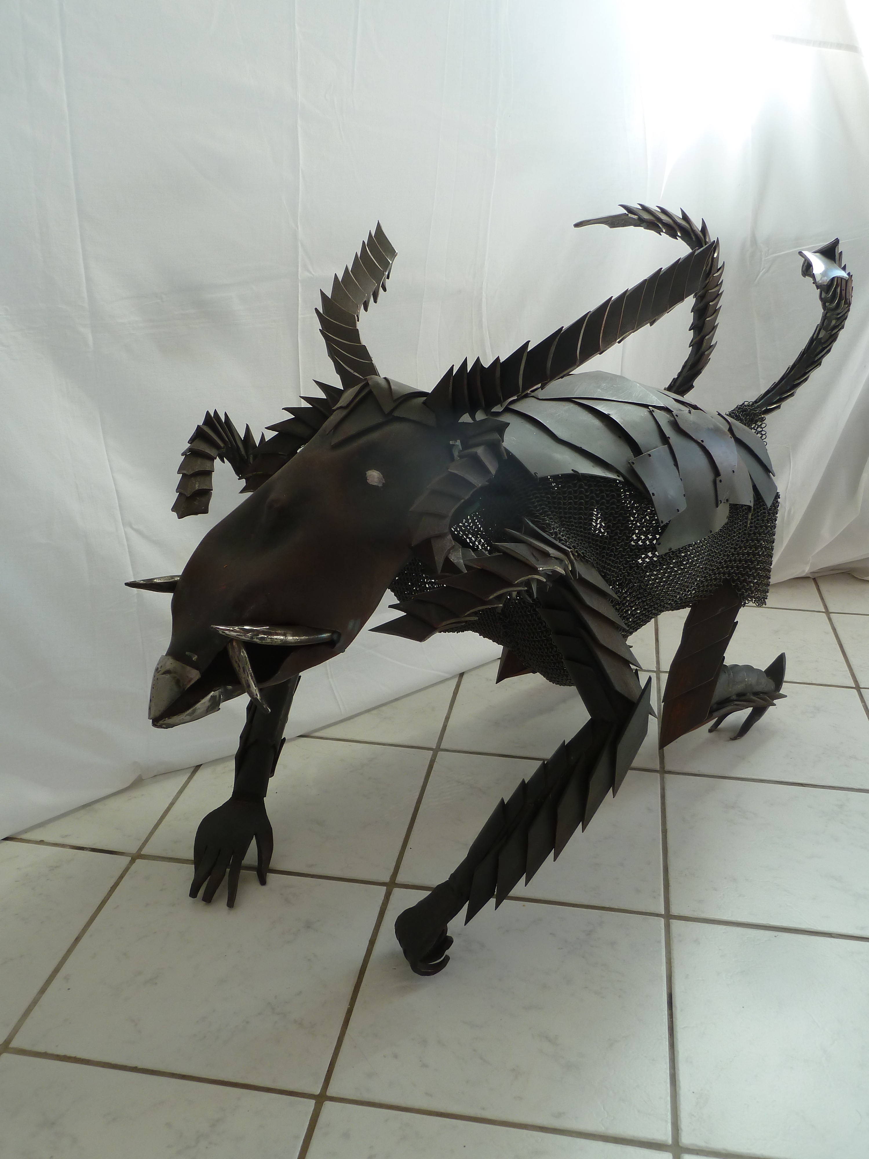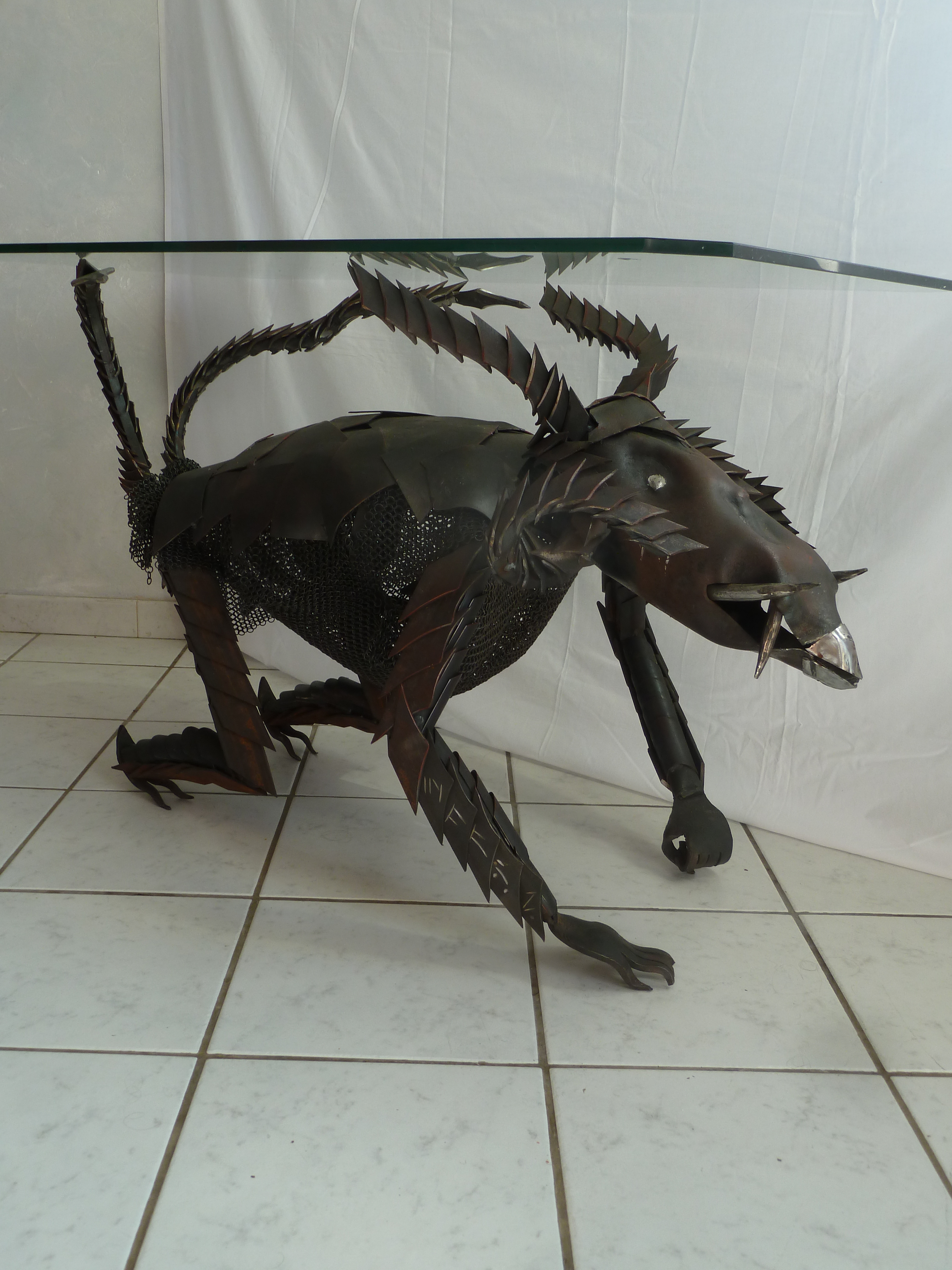 Voici ma deuxième sculpture-table basse. Il s’agit d’un chien démoniaque en armure nommé Pipo. C’est fou les noms stupides que l’on est capable de donner à ces pauvres bêtes…