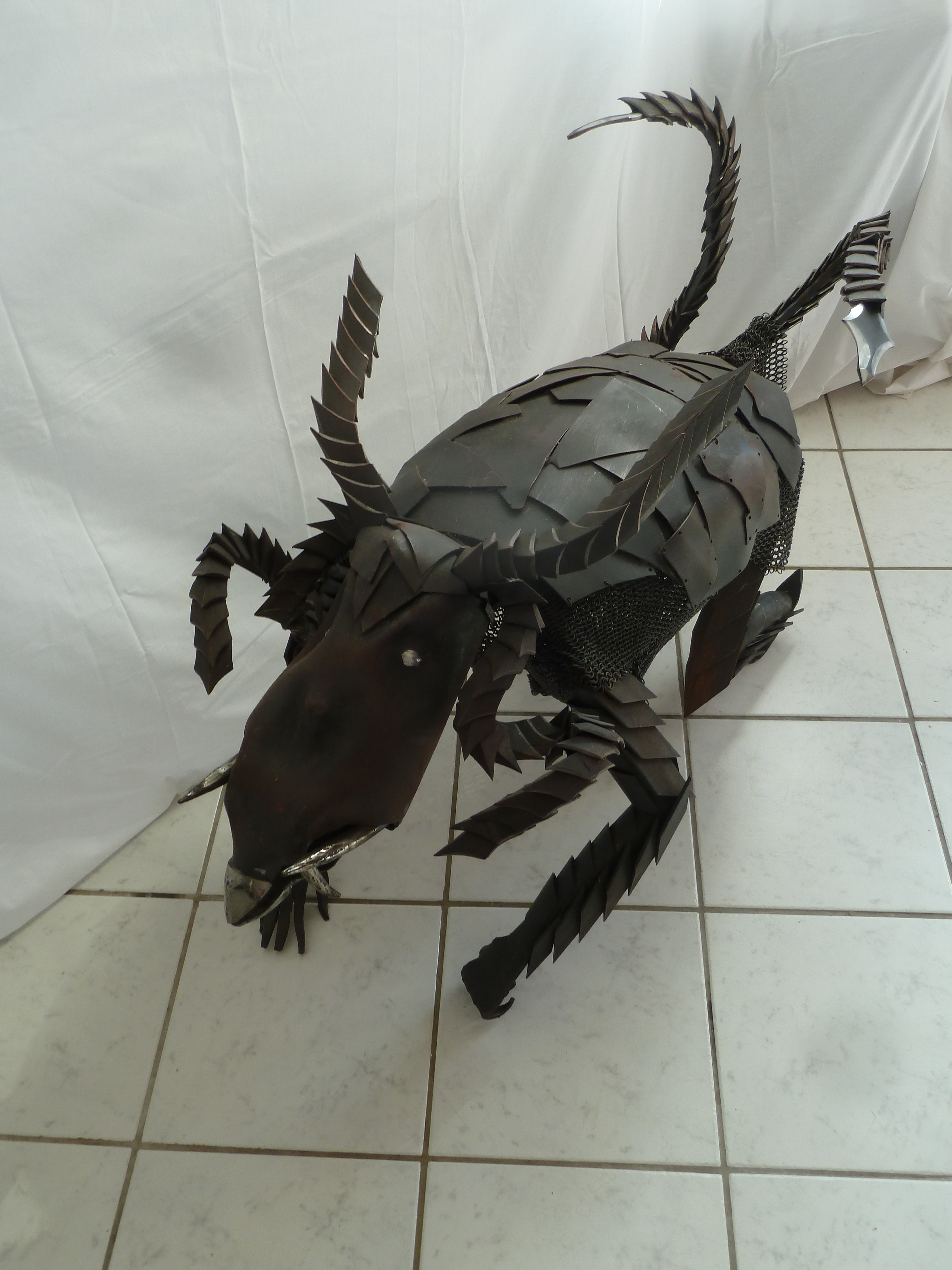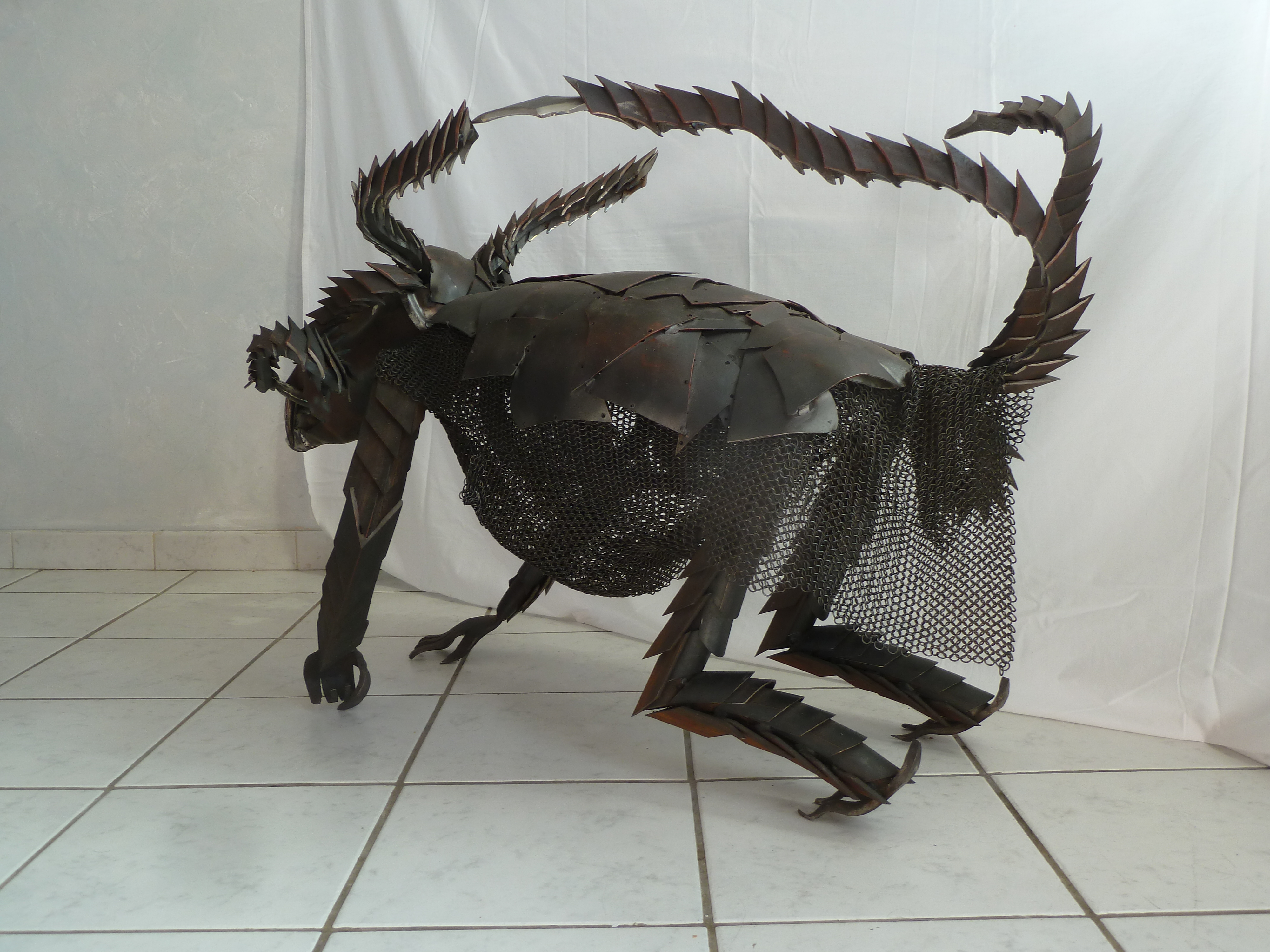Il est constitué de tubes pour les membres et de plats en 40×8 pour la structure du torse. Il possède une cotte de maille ainsi qu’une carapace en chutes de tôles.